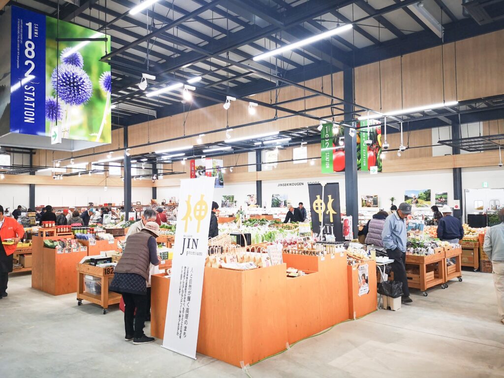 新鮮な野菜やジビエ、地元のスイーツが並び、