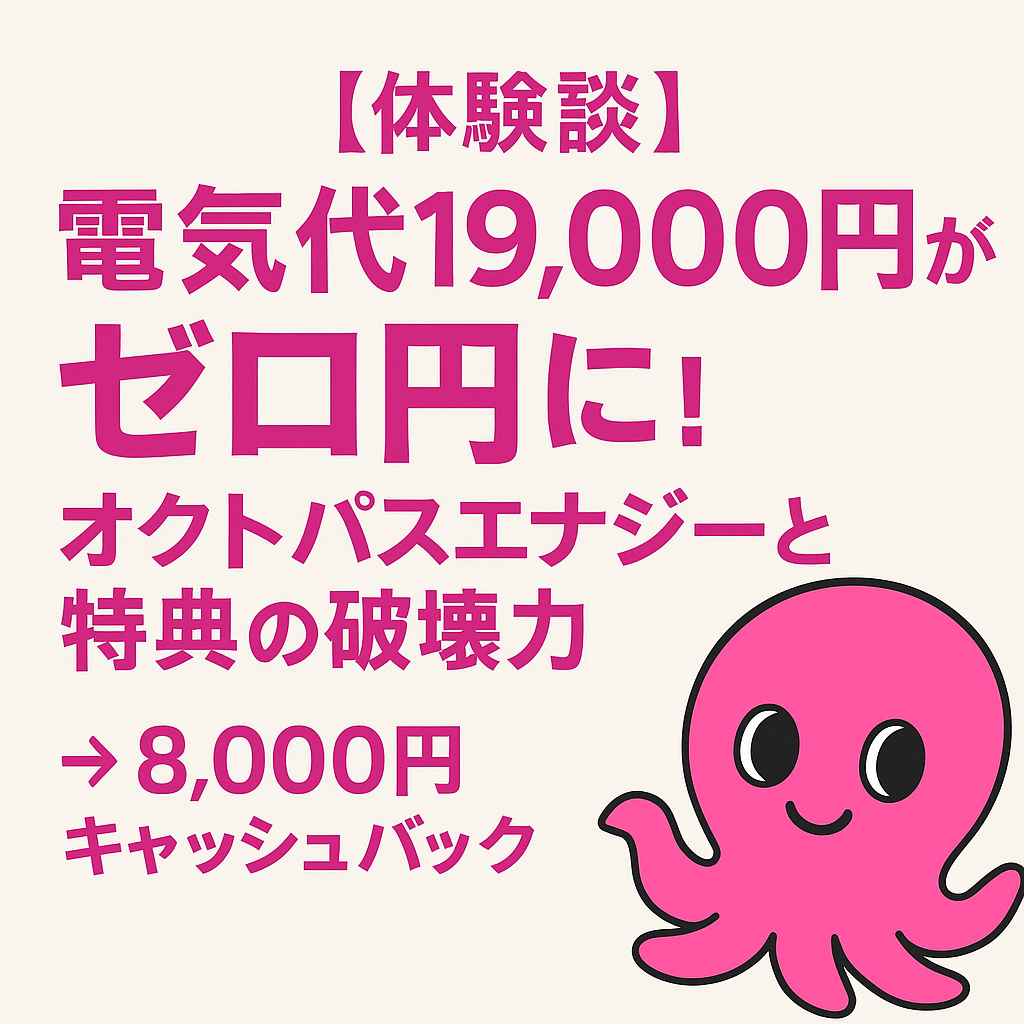 【体験談】電気代19,000円がゼロ円に!オクトパスエナジーと特典の破壊力